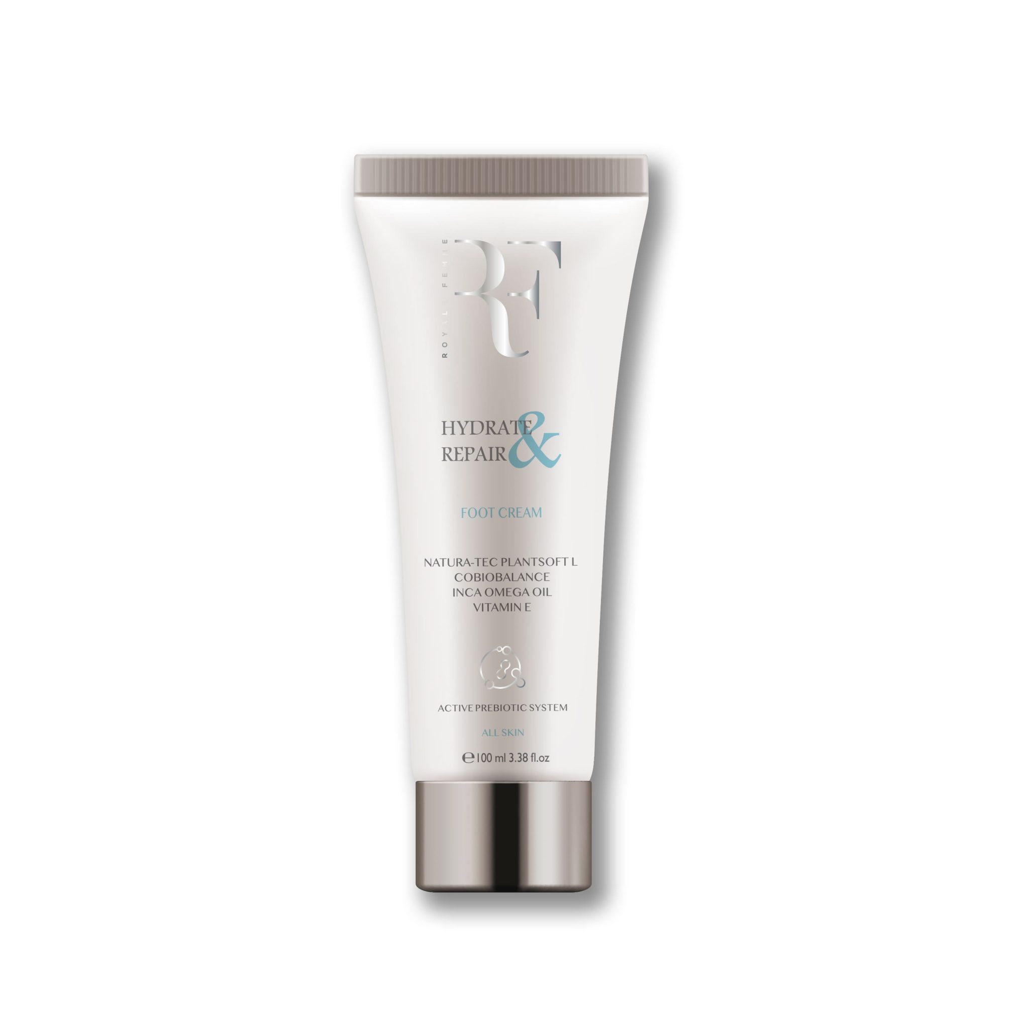 کرم مرطوب کننده و ترمیم کننده پا آر اف ( رویال فم ) مناسب براب انواع پوست حجم ۱۰۰ میلی لیتر