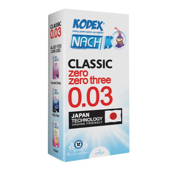 کاندوم ناچ کدکس مدل 0.03 کلاسیک بسته 12 عددی