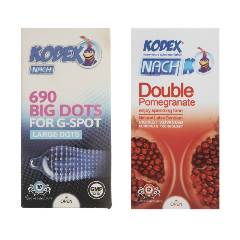 کاندوم ناچ کدکس مدل Big Dots بسته 10 عددی به همراه کاندوم کدکس مدل Double Pomegranate بسته 12 عددی