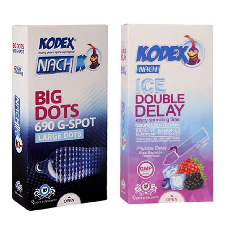کاندوم ناچ کدکس مدل ICE DOUBLE DELAY بسته 10 عددی به همراه کاندوم ناچ کدکس مدل 690 BIG DOTS بسته 10 عددی