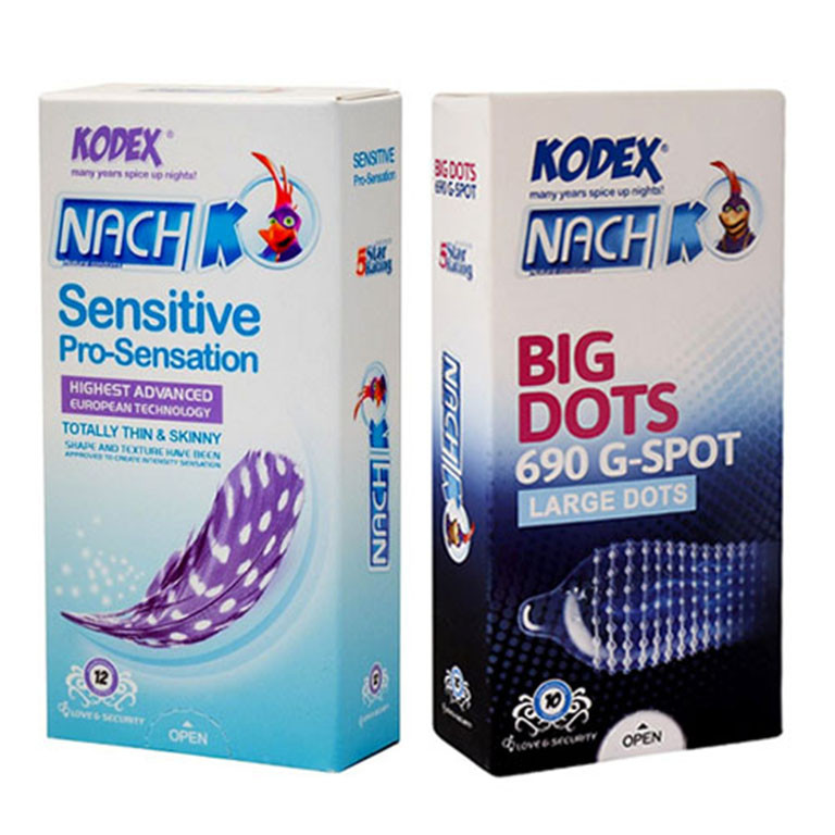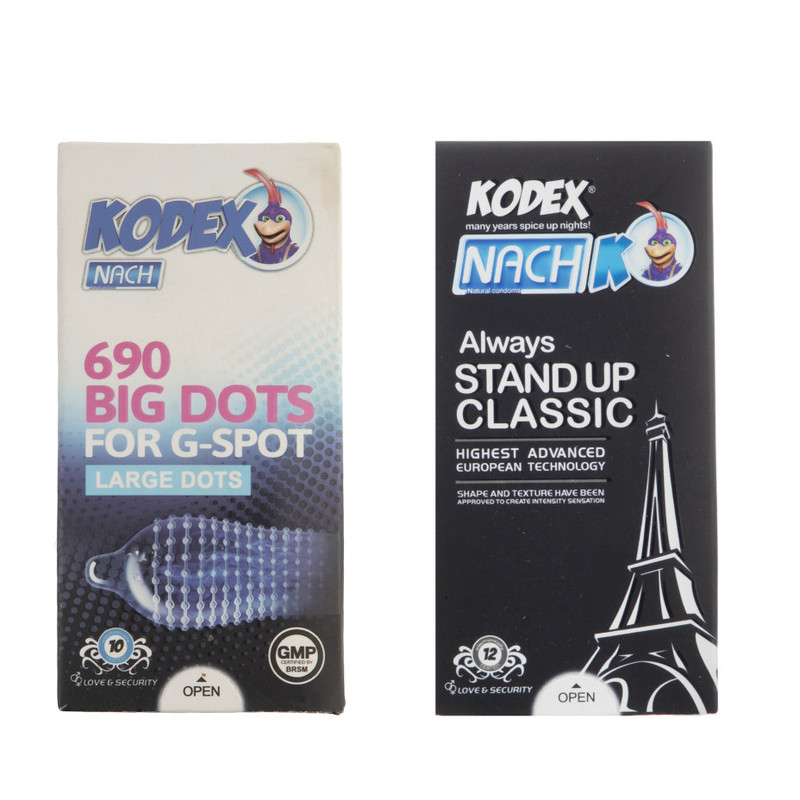 کاندوم ناچ کدکس مدل 690 BIG DOTS بسته 10 عددی به همراه کاندوم ناچ کدکس مدل Sensitive بسته 12 عددی