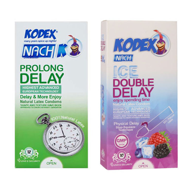 کاندوم ناچ کدکس مدل PROLONG DELAY بسته 12 عددی به همراه کاندوم ناچ کدکس مدل ICE DOUBLE DELAY بسته 10 عددی