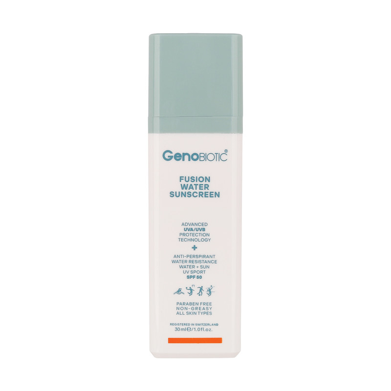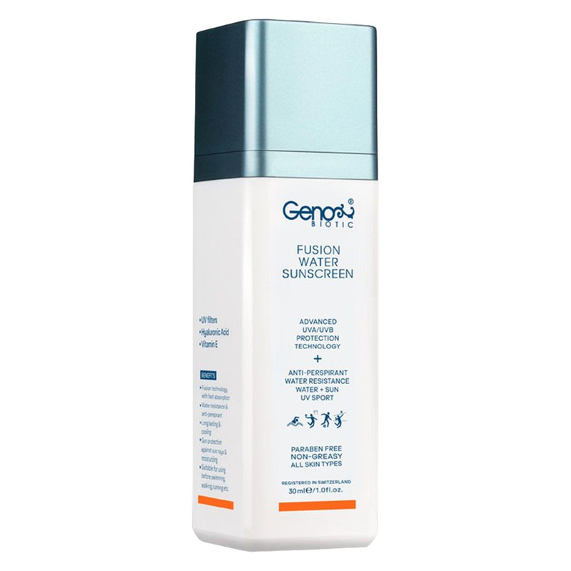 کرم ضدآفتاب بیرنگ ژنوبایوتیک مدل Fusion water مناسب انواع پوست، حجم 30 میلیلیتر