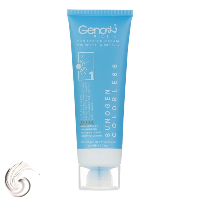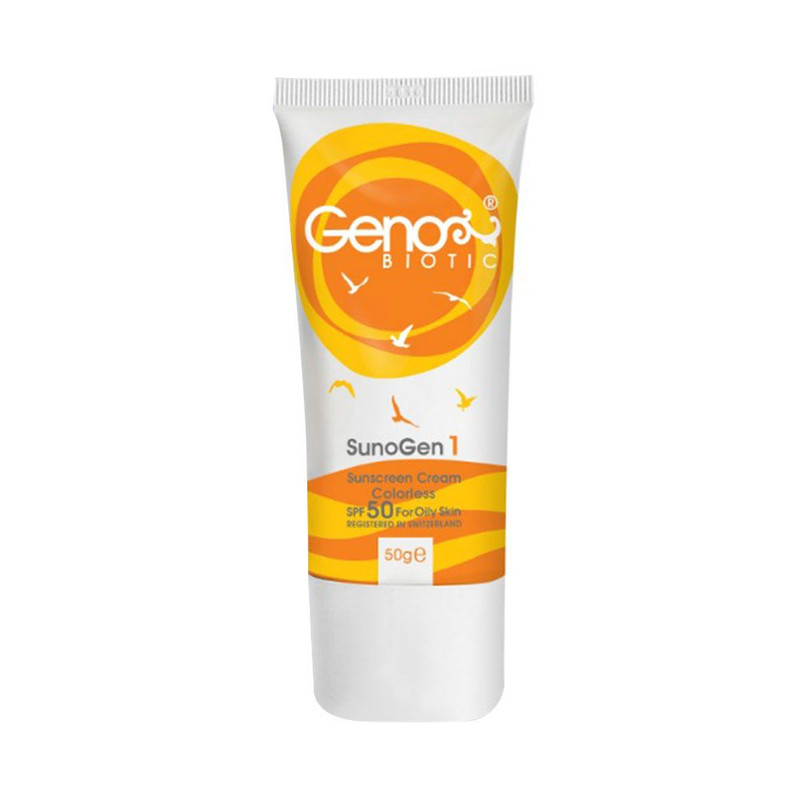 کرم ضدآفتاب بیرنگ ژنوبایوتیک SPF50 مدل 01 محافظ UVA ،UVB، مناسب پوستهای مختلط و چرب، حجم 50 میلیلیتر
