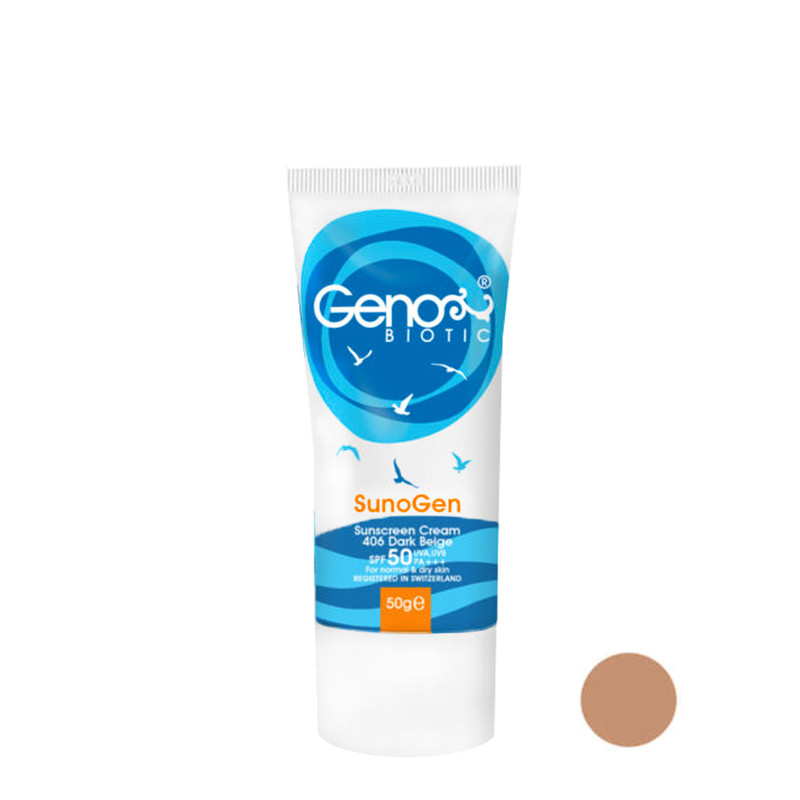 کرم ضدآفتاب رنگی ژنوبایوتیک SPF 50 مدل SUNO محافظ UVA ،UVB، مناسب پوستهای چرب، حجم 50 میلیلیتر
