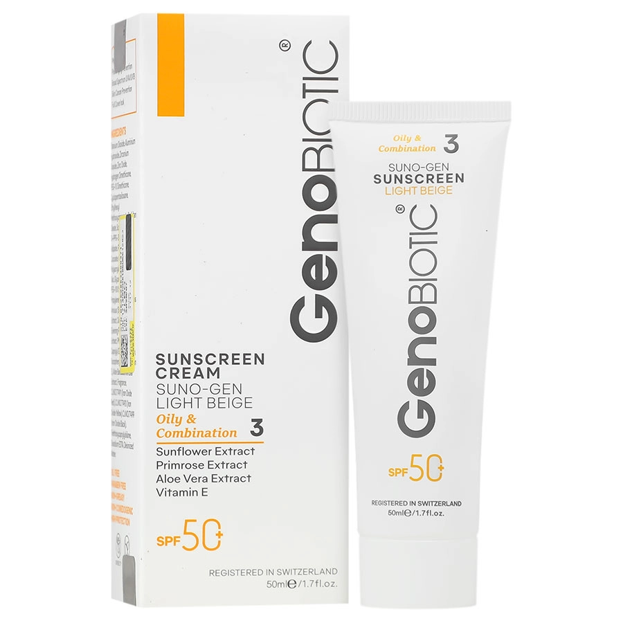 کرم ضد آفتاب پوست های چرب SPF50 بژ روشن ژنوبایوتیک حجم 50ml