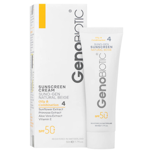 کرم ضد آفتاب پوست های چرب SPF50ژنوبایوتیک (بژ طبیعی)