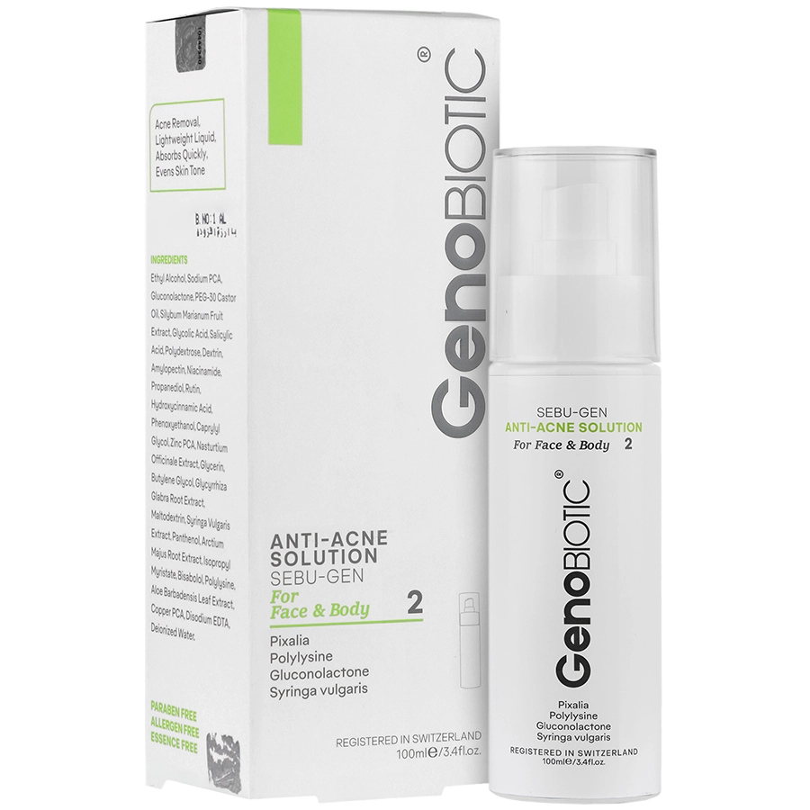 محلول ضد آکنه صورت و بدن سبوژن 2 ژنوبایوتیک حجم 100ml