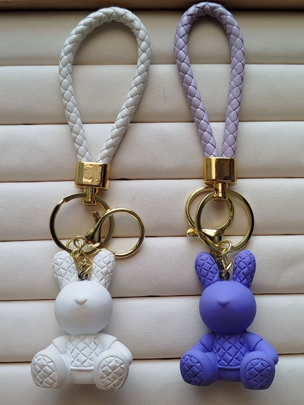 جا کلیدی حلقه طلایی بند چرمی طرح خرگوش شطرنجی کد 23