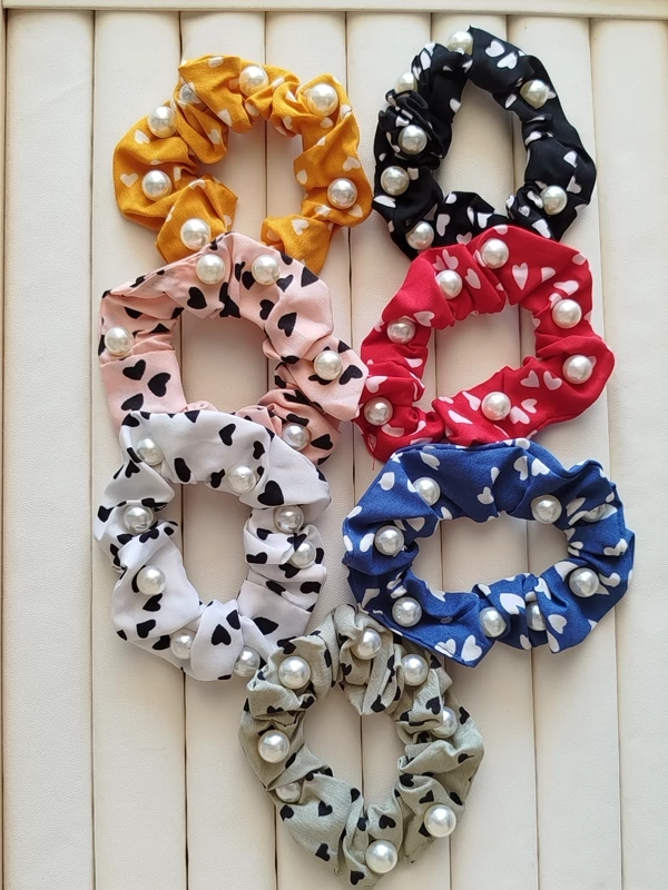 کش مو اسکرانچی طرح قلبی مرواریدی کد 36