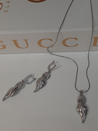 نیم ست نگین دار طرح برگی