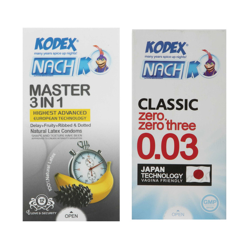 کاندوم کدکس مدل Master 3 In 1 بسته 12 عددی به همراه کاندوم مدل 0.03 بسته 10 عددی