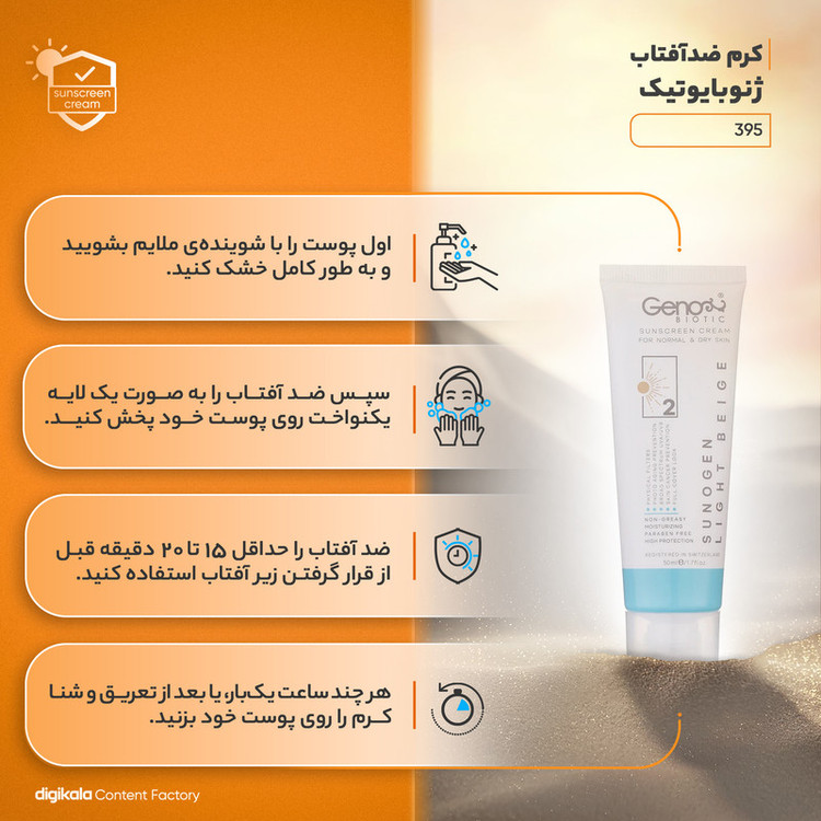 کرم ضدآفتاب ژنوبایوتیک مدل 395، حجم 50 میلیلیتر