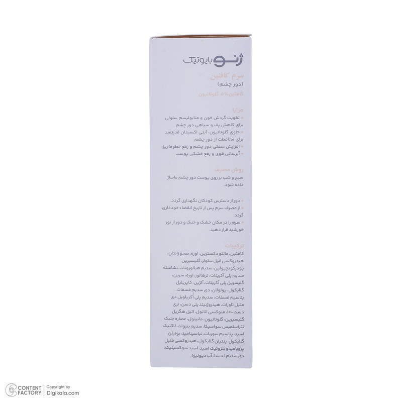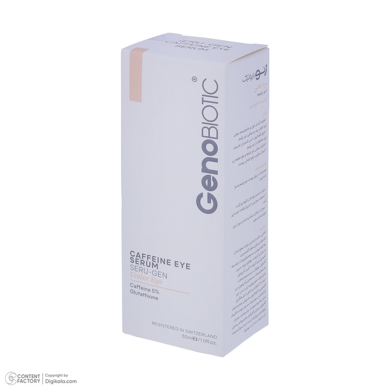 سرم دور چشم ژنوبایوتیک مدل کافئین مناسب انواع پوست حجم 30 میلی لیتر