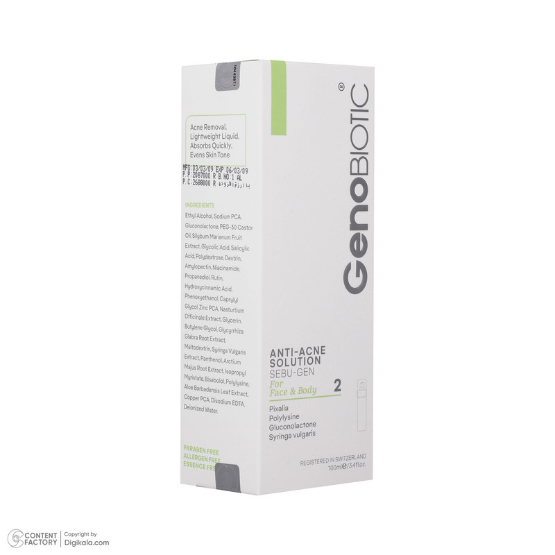 محلول ضد جوش ژنوبایوتیک مدل Sebu Gen حجم 100 میلی لیتر
