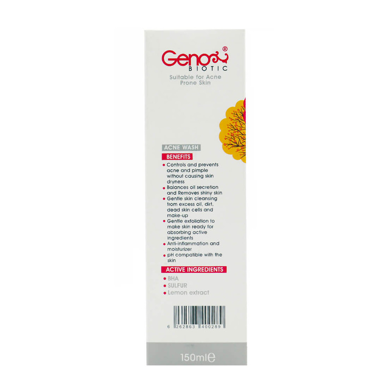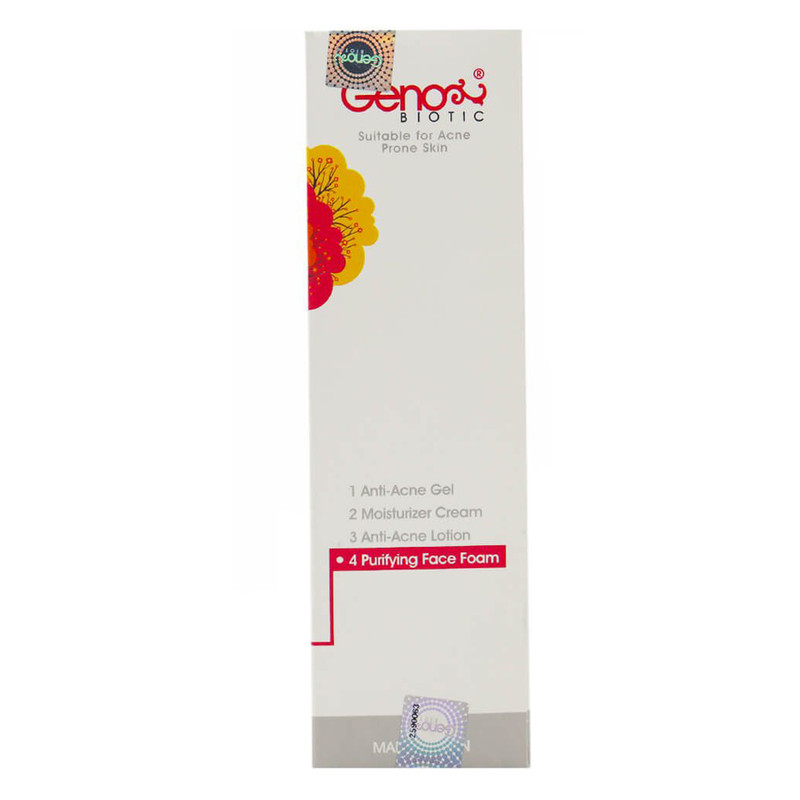 فوم شستشوی صورت ژنو بایوتیک به گونهای طراحی شده است که بدون ایجاد خشکی و حساسیت پوستی، زیبایی و پاکی را برای پوست به ارمغان میآورد. این فوم دارای ترکیبات ویژهای از عصارههای طبیعی گیاهی بوده است که موجب پاکسازی پوست از آلودگیها و آسیبهای محیطی میشود. این فرمولاسیون حاوی عصاره چای سبز بوده که خواص آنتیاکسیدانی دارد و موجب پاکسازی پوست از سموم و ترکیبات مضر (رادیکالهای آزاد) میشود. همچنین این عصاره، به رفع التهاب و حساسیتهای پوستی کمک میکند و موجب پاکسازی پوست از عوامل میکروبی میشود. این فوم همچنین حاوی بتاهیدروکسی اسید بوده که با لایهبرداری ملایم موجب پاکسازی منافذ پوست از چربی، سلولهای مرده، کراتین و آلودگیهای محیطی میشود و میزان لطافت و نرمی پوست را افزایش داده و باعث کاهش التهاب میشود. Zinc-PCA هم فعالیت آنزیمی 5-آلفاردوکتاز را مهار میکند در نتیجه میزان ترشح سبوم (چربی پوست) تنظیم میشود. این ترکیب همچنین باعث رطوبترسانی موثر به پوست میشود و خواص باکتریواستاتیک دارد. عصاره لیمو هم به عنوان یکی دیگر از عصارههای طبیعی استفاده شده در این فوم، موجب لایه برداری ملایم پوست میشود و به پاکسازی پوست از سموم محیطی کمک کرده و باکتری آکنه را نابود میکند. سولفور (گوگرد) استفاده شده در این فوم به اعماق منافذ پوست نفوذ کرده و به رفع ترشحات اضافی غدد چربی و سایر آلودگیهای مسدود کننده منافذ پوست و مسبب آکنه کمک میکند. این ترکیب دارای خواص دوگانه کومدولیتیک و کراتولیتیک جهت لایهبرداری و رفع کومدونهای پوستی و همچنین خاصیت ضد میکروبی دارد. آلانتوئین هم دارای خواص ضد التهابی دارد و از ایجاد حساسیت و آزردگی پوست جلوگیری نموده و به رفع خشکی پوست کمک میکند.