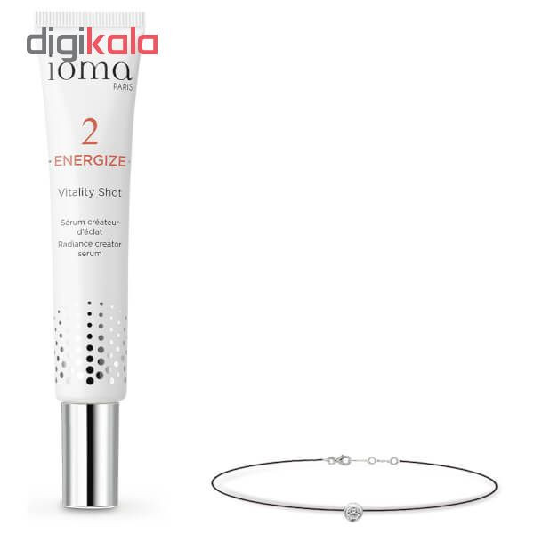 پک ویژه آیوما مدل Vitality Shot گزینه بسیار مناسبی جهت هدیه به بانوان عزیز میباشد. این پکیج ویژه شامل یک سرم متعادل کننده پوست آیوما و یک دستبند سواروسکی ساده و شیک میباشد.سرم ایوما مناسب انواع پوست و یک ابرسان و بمب انرژی برای پوست میباشد که میتوان آن را با کرم پودر هم مخلوط کرد تا پوستی یک دست و زیبا داشت.