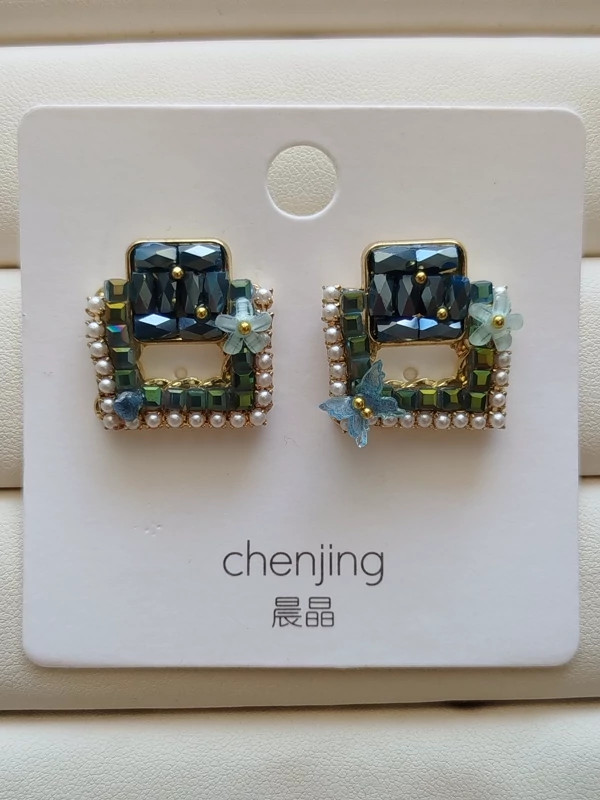 گوشواره کریستالی تمام نگین مربعی کد 57