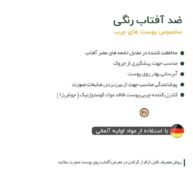 دیدن محصولات مرتبطشـرکت فرانگر اندیشهور آفرین ( ســهامی خاص) در ســال 1398 تأســیس شد . هدف این مجموعه بالا بردن کیفیت محصـولات داخل ایران ، به دلیل فقدان محصولات آرایشی و بهداشتی اروپایی است بر اساساین تفکر محصـولات تخصـصــی و مراقبتی پوست فرموله و طراحی گردید که به لطف ایزد منان در مسـیر موفقیت گام های بزرگی برداشته شده و خواهد شد. این محصول محافظت کننده در مقابل اشعه هاي مضر آفتاب مناسب جهت پیشگیري از چروك آبرسانی بهتر روي پوست پوشانندگی مناسب جهت از بین بردن ضایعات صورت کنترل کننده چربی پوست فاقد مواد کومدوژنیک ( جوش زا ) و این محصول از بهترین مواد آلمانی استفاده شده است