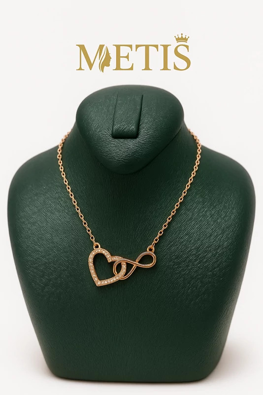 گردنبند نگین دار قلب و بینهایت طلایی کد 13