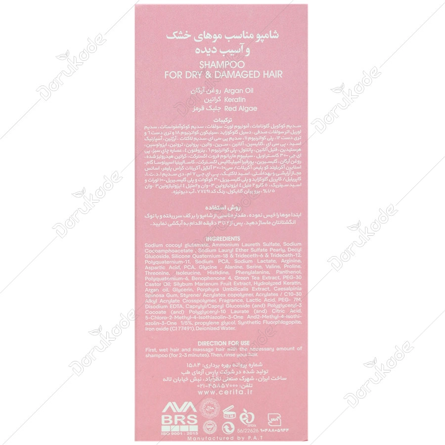شامپو سریتا برای موهای خشک و آسیب دیده حاوی رایحه گل های سبز: .