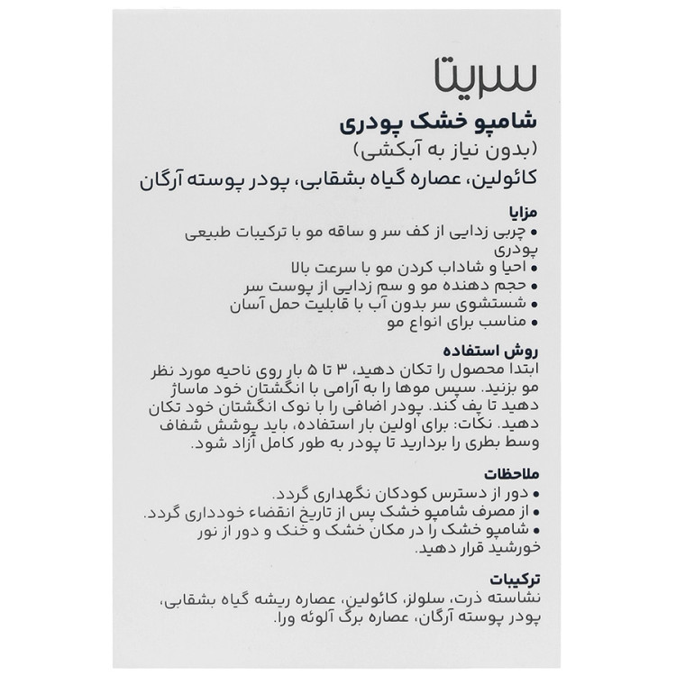 شامپو خشک پودری سریتا کاهش دهنده چربی مو بدون نیاز به شستشو: .