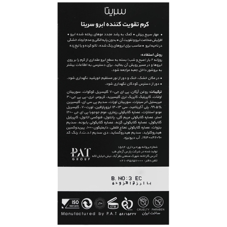 کرم تقویت کننده و ضد ریزش ابرو سریتا قابل استفاده برای بانوان و آقایان: .