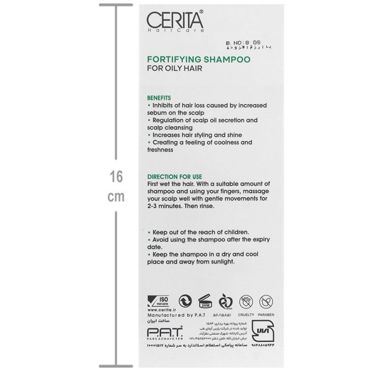 شامپو تقویت کننده موی چرب سریتا حجم 200 ml