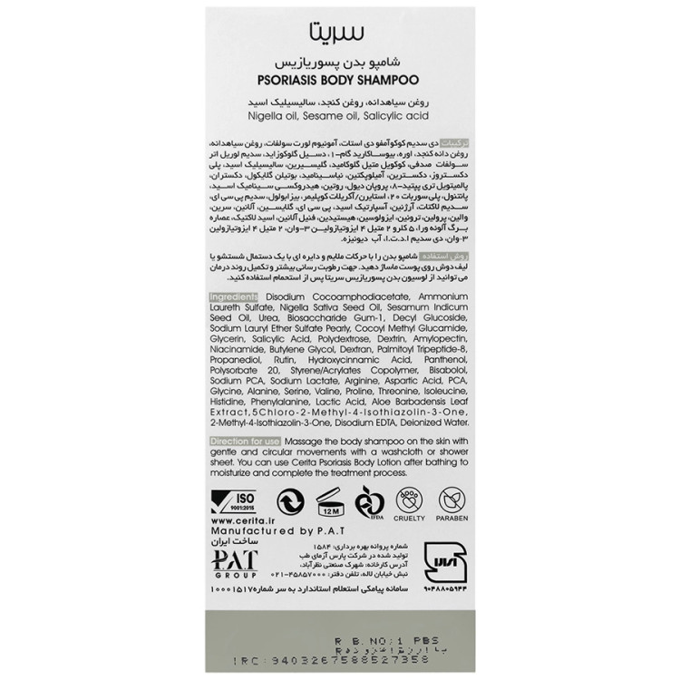 شامپو بدن پسوریازیس سریتا حجم 250 ml