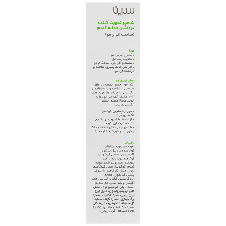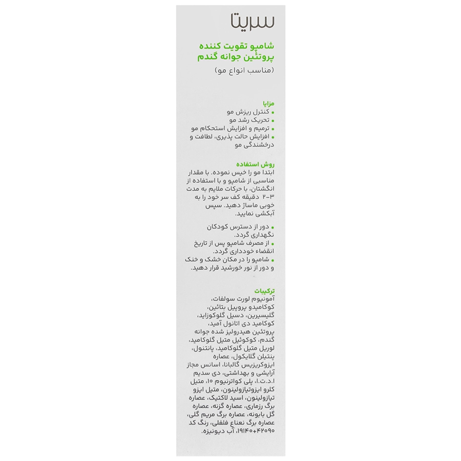شامپو تقویت کننده جوانه گندم سریتا حجم 200 ml