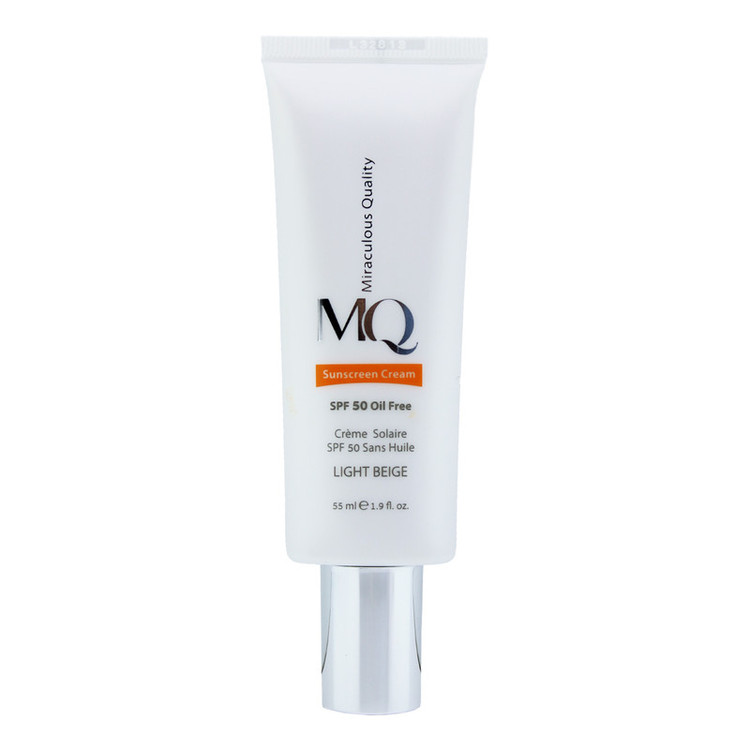 کرم ضد آفتاب رنگی ام کیو SPF50 مدل LIGHT BEIGE OIL FREE مناسب پوست های چرب حجم 55 میلی لیتر