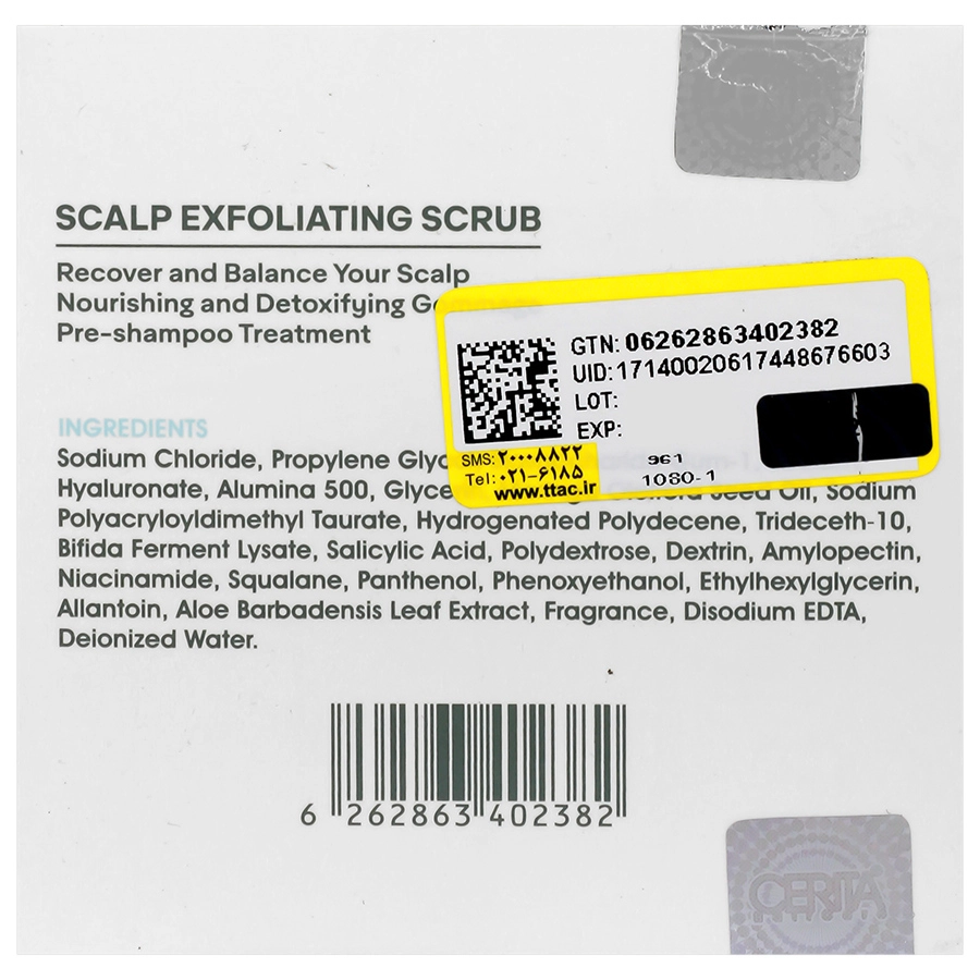 روش مصرف:مقداری از اسکراب را بر روی کف سر مرطوب خود بزنید.