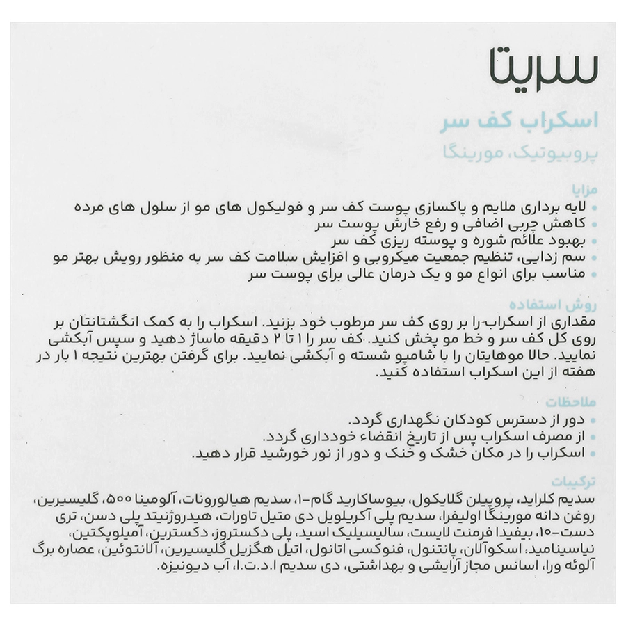 اسکراب کف سر سریتا، حاوی پروبیوتیک و عصاره مورینگا: .