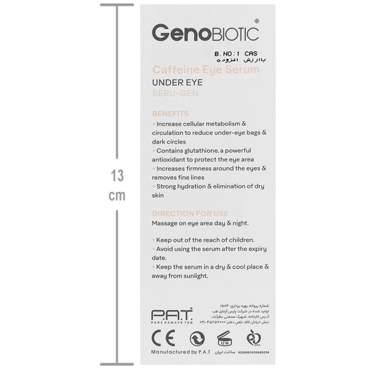 سرم دور چشم کافئین ژنوبایوتیک حجم 30 ml