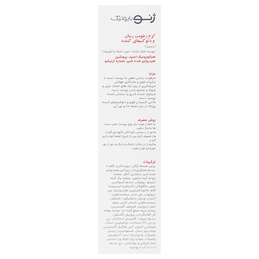 کرم دتوکسیفای پوست خشک دست ژنوبایوتیک، رطوبترسانی عمقی و حفظ آب در بافتهای پوست: .