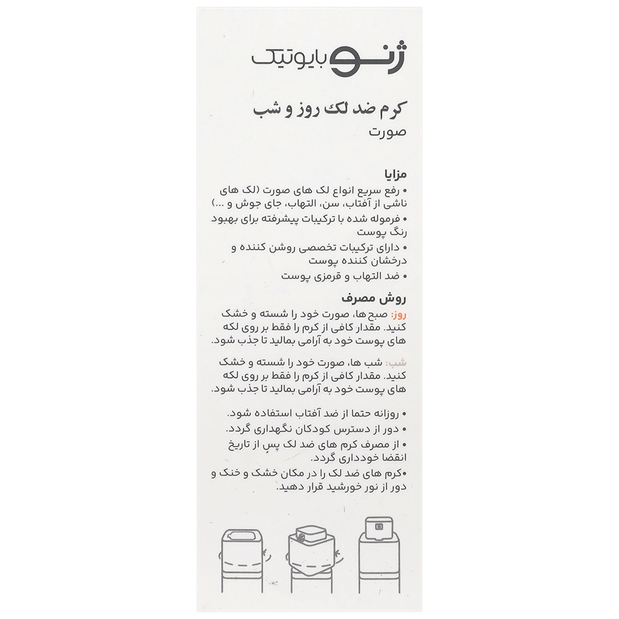 کرم ضد لک روز و شب ژنوبایوتیک محتوی یک کرم روز و یک کرم شب ضدلک: .