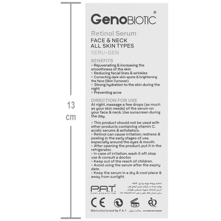 سرم رتینول ژنوبایوتیک، کاهش چین و چروک و خطوط ریز پوست: .