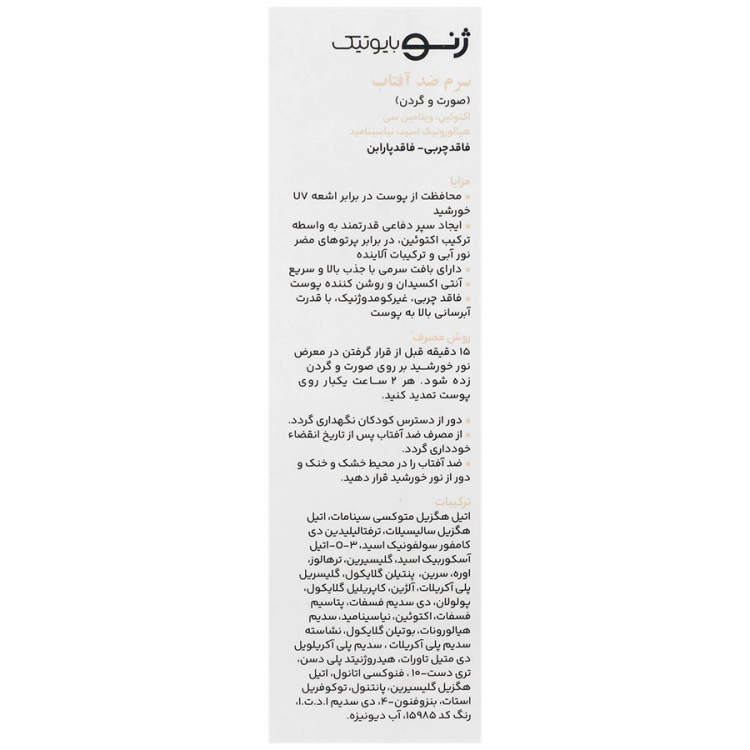 حاوی اکتوئین، ویتامین سی، هیالورونیک اسید و نیاسینامید: .