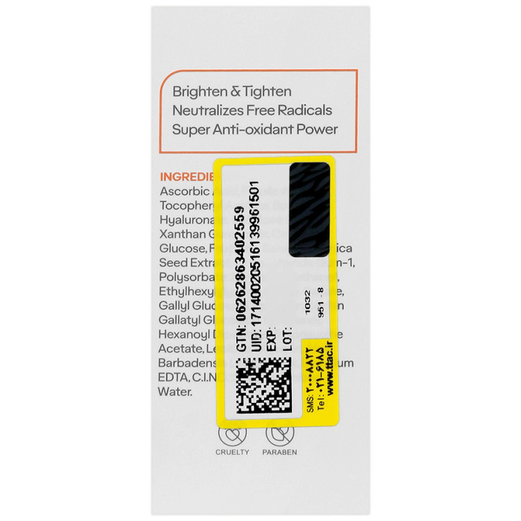 روش مصرف:بطری را روی یک سطح ثابت قرار دهید و آن را محکم نگه دارید. با کف دست بالای در پوش را فشار دهید تا کریستال ها داخل سرم آزاد شوند. بطری را به مدت 60 ثانیه به شدت تکان دهید تا کریستال ها به طور کامل در سرم حل شوند. در پوش را بردارید و آن را با قطره چکان جایگزین کنید. 3-4 قطره را روی صورت و گردن خود بمالید.