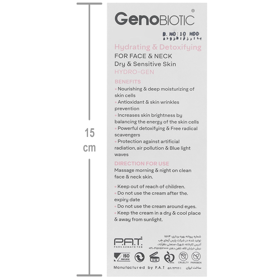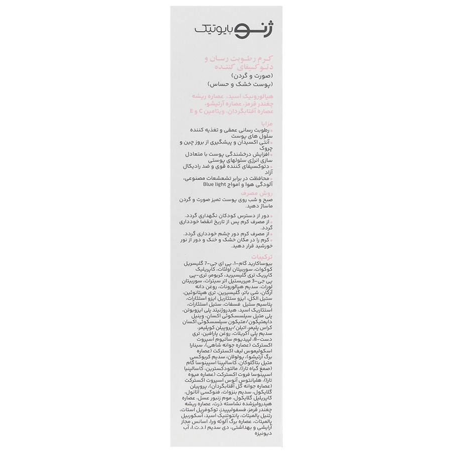 کرم رطوبت رسان و دتوکسیفای کننده پوست خشک و حساس ژنوبایوتیک حجم50ml