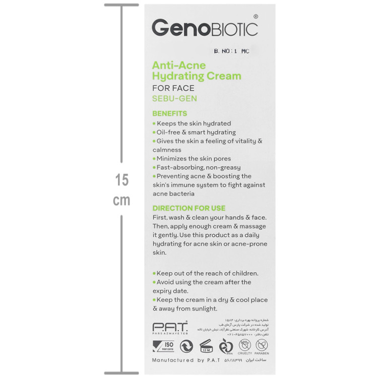 کرم آبرسان ضد آکنه سبوژن4 ژنوبایوتیک حجم 50ml