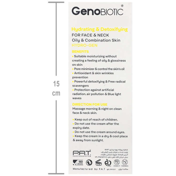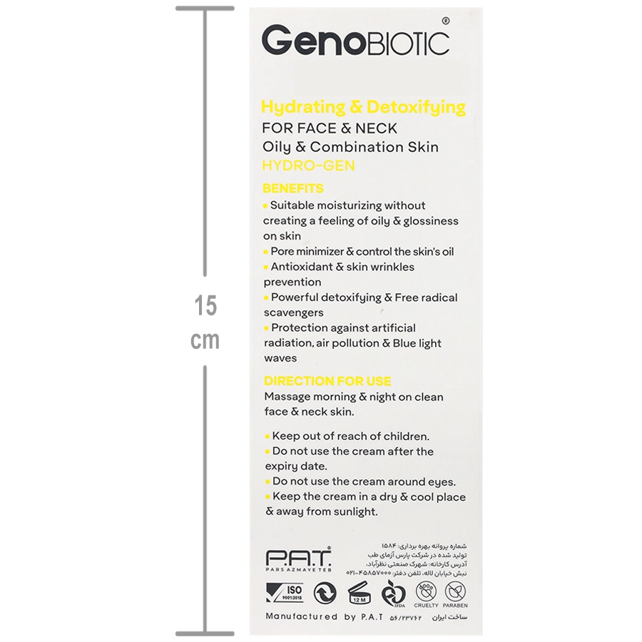 کرم رطوبت رسان و دتوکسیفای کننده پوست چرب ژنوبایوتیک، مرطوب کننده قوی: .