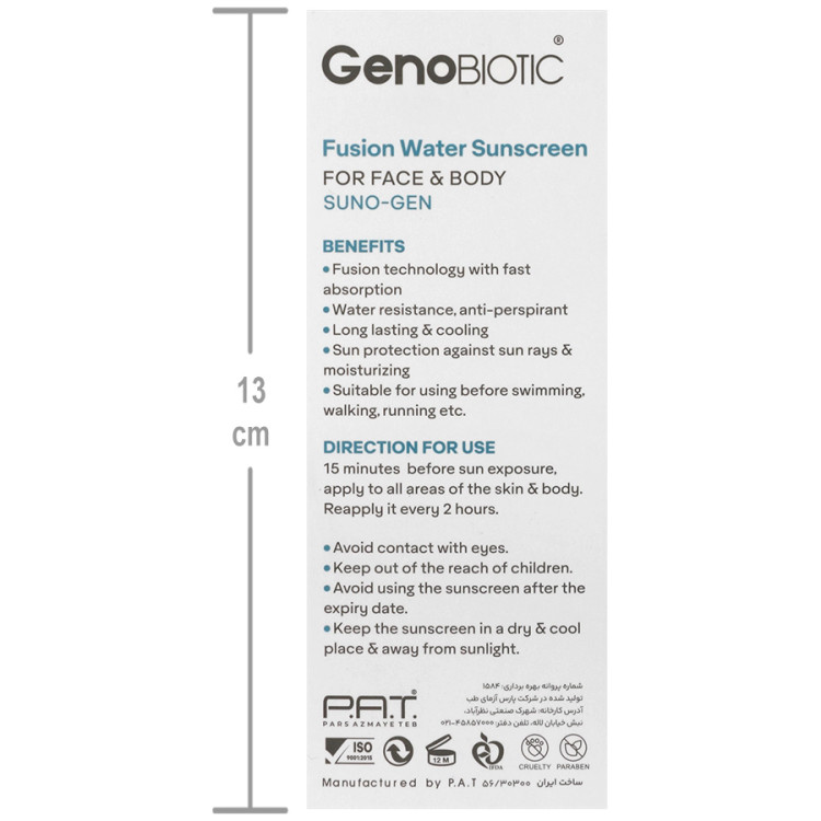 کرم ضد آفتاب فیوژن واتر ژنوبایوتیک حجم 30ml