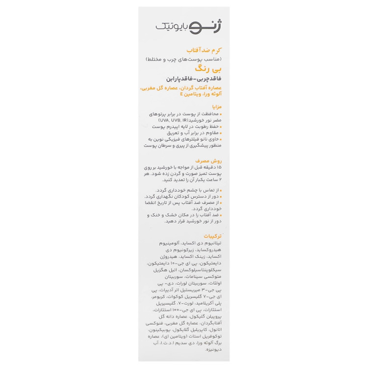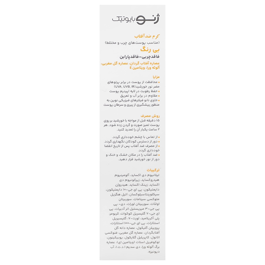 کرم ضد آفتاب بی رنگ پوست های چرب SPF50 ژنوبایوتیک حجم 50ml