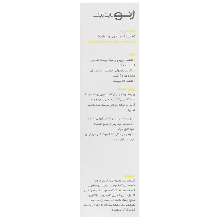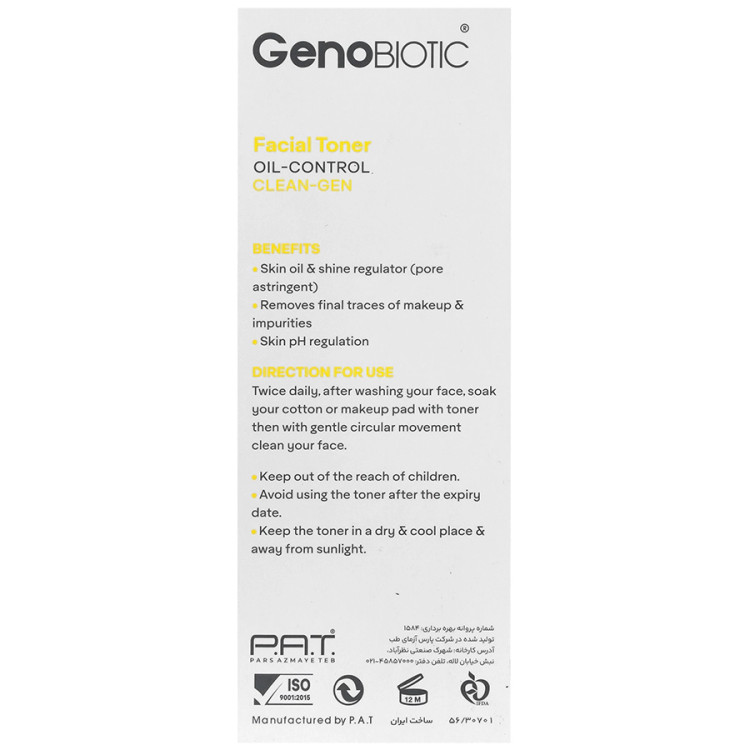 تونر تنظیم چربی و براقیت صورت ژنوبایوتیک حجم 150ml