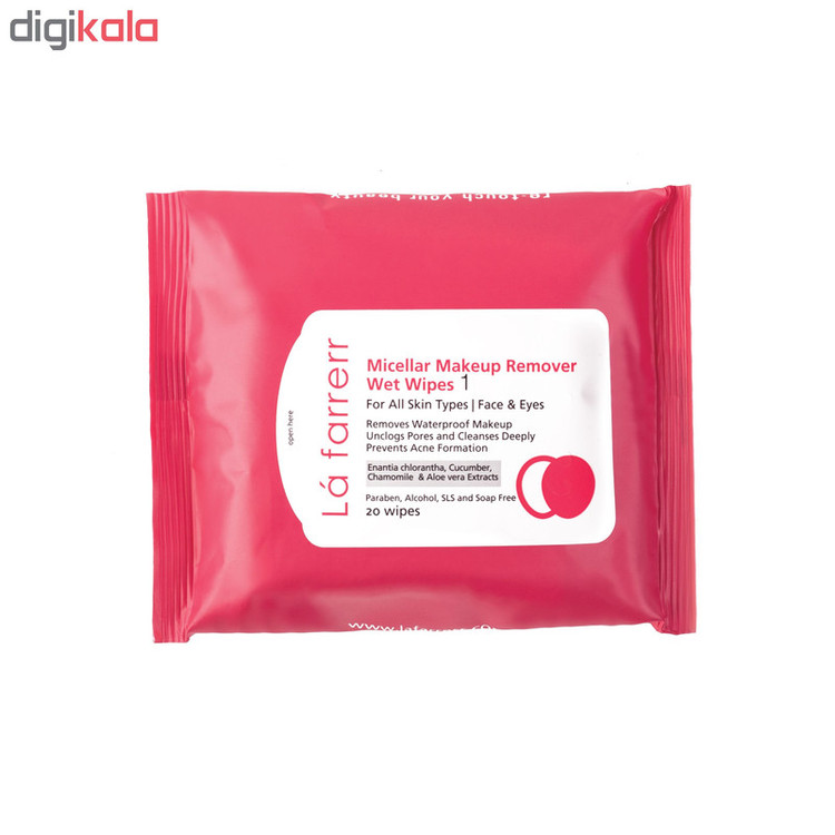 دستمال مرطوب پاک کننده آرایش چشم و صورت لافارر مدل 01 مناسب انواع پوست بسته 20 عددی