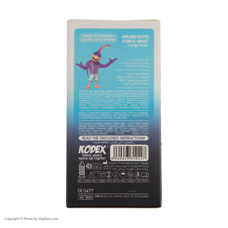 آغشته به ماده روان کننده دارای خارهای درشت در سراسر کاندوم دارای منبع ذخیره در ابتدای کاندوم کاملا ایمن