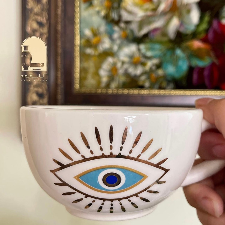 فنجان سرامیکی(دستساز)‌ مدل چشم نظر