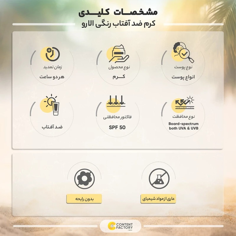 معرفی کرم ضد آفتاب رنگی الارو مدل SPF50 مناسب انواع پوست