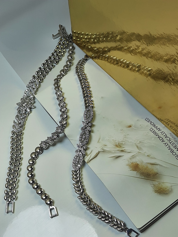 دستبندهای نگین دارنقره ای -استیل و رنگ ثابت-ضد حساسیت-بسیار زیبا و دارای نگین های مخراجکاری شده (بدون ریزش)